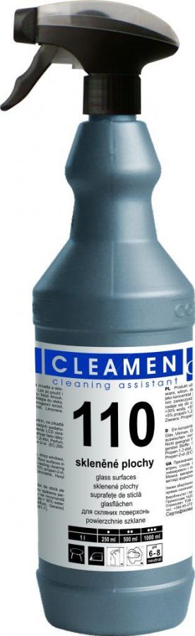 CLEAMEN 110 skleněné plochy 1 l - koncentrovaný prostředek, určený k ředění a přímému použití. Neředěný se používá při silném znečištění a je nutné plochy dobře omýt čistou vodou. Je určen zejména k mytí oken, skleněných výplní dveří, vitrín, na zrcadla a skleněné desky stolů. Má výborné čistící , odmašťovací a leštící vlastnosti. Lze jej použít i na vytírání vysoce lesklých podlahových ploch pro zanechání povrchu beze šmouh. Přípravek je nově velmi příjemně naparfemován do ovocné vůně, a zároveň odstraněn typický zápach chemikálie.