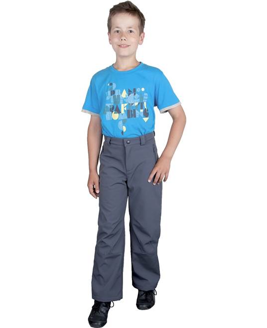 voděodolné dětské šedé softshellové kalhoty do pasu